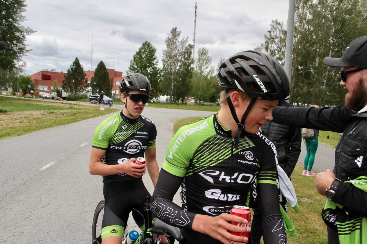 Maantiepyöräilyn SM-kilpailujen toinenkin päivä Jurvassa sujui TWD-Länkenin joukkueelta mainiosti. Toisena päivänä ajettiin naisten ja naisjunioreiden (N18) maantiekilpailun lisäksi miesjunioreiden (M18) 103 kilometrin kilpailu. Siinä voitto meni Porvoon Akilleksen Samuli Öhmanille, mutta TWD-Länkenin Jimi Aalto ja Oskari Kolehmainen valloittivat muut palkintokorokepaikat. Ennakkoasetelmissa Porvoon Akilleksen juniorijoukkue oli vahvin ja se käytti vahvuuttaan hyvin hyväkseen. Kun kilpailusta oli ajettu noin 10 kilometriä, kärkeen irtosi Akilleksen Samuli Öhman. Hän sai ajaa jonkun matkaa yksin, kunnes takaa nousi hänen seurakseen seurakaveri Veeti Vainio ja TWD-Länkenin Oskari Kolehmainen. Kolmikko jatkoi yhdessä noin 45 kilometriin asti, kunnes Akilleksen parivaljakko yritti jättää Kolehmaista. Kolehmainen ei jäänyt, mutta Öhman pääsi loppujen lopuksi yksin karkuun. Ja se karkumatka piti maaliin asti. Samuli Öhman otti Suomen mestaruuden pitkän soolon jälkeen noin neljän ja puolen minuutin erolla. Samuli Öhmanin takana käytiin omaa kilpailua muista palkintosijoista. Veeti Vainion ja Oskari Kolehmaisen seuraksi nousi pääjoukosta irronneet Leevi Kervinen (Akilles), Jesper Lindberg (Sibbo-Vargarna) sekä Jimi Aalto (TWD-Länken). Näin viiden ajajan ryhmä oli ensimmäinen takaa-ajoryhmä Samuli Öhmanin takana. Seuraajaryhmässä Akilleksen ajajilla ei ollut suurta intressiä tehdä vetotöitä. TWD-Länkenin Aalto ja Kolehmainen yrittivät muutamaan otteeseen pienentää ryhmää, mutta se ei onnistunut. Viisikko ratkaisi muut palkintosijat loppukirissä. Siinä Jimi Aalto oli nopein ja hyvin kirissä maaliviivalle oppikirjojen mukaan pyöränsä ”heittänyt” Oskari Kolehmainen kolmas. Kilpailujen päätöspäivänä sunnuntaina ajetaan miesten 192 kilometrin maantiekilpailu. Tulokset Maantiepyöräilyn SM-kilpailut, Jurva Maantieajo M-18 103 km |